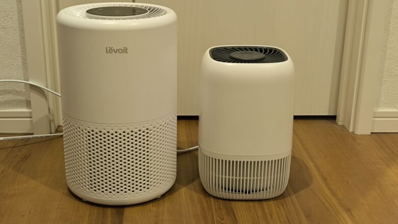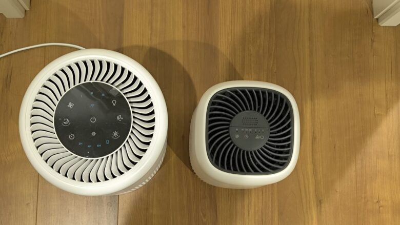 以前紹介した「Levoit Core 200S」と並べてみると、どれだけ小さいのか実感できました。