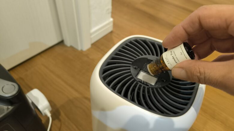 空気清浄機の上部にアロマオイルを垂らせるトレイあり、フィルターにアロマオイルを数滴たらせばきれいな空気を排出すると同時に、大好きな香りを部屋中に拡散してくれます。
