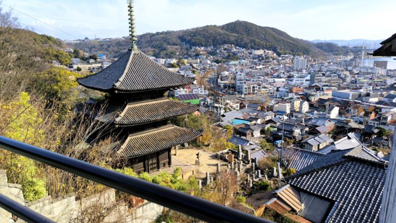 千光寺公園の展望台の展望デッキからは、尾道水道や日本遺産の街並みを大パノラマで楽しむことができます。