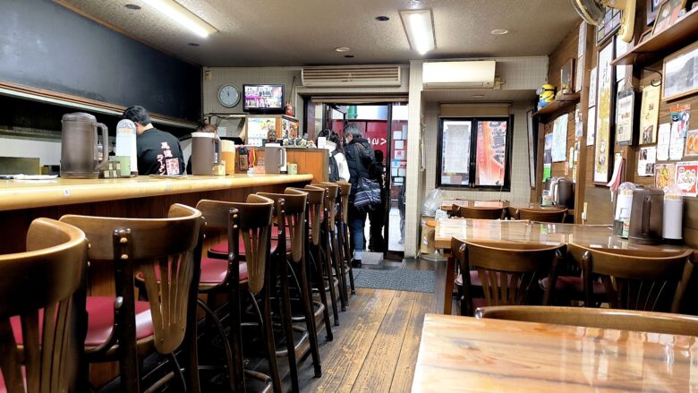 店内を見たら、お笑い芸人の錦鯉さんがロケで来ていたお店で、錦鯉さんが座っていた席に座らせて貰えました。